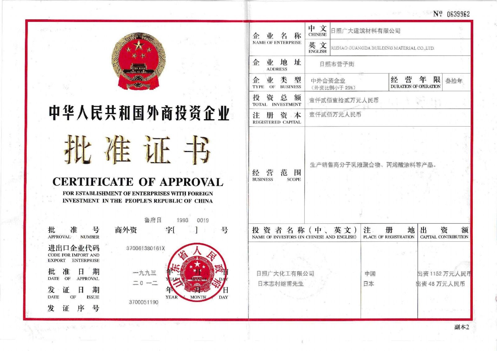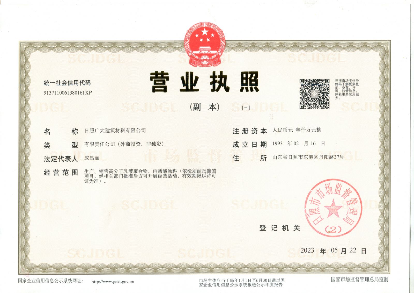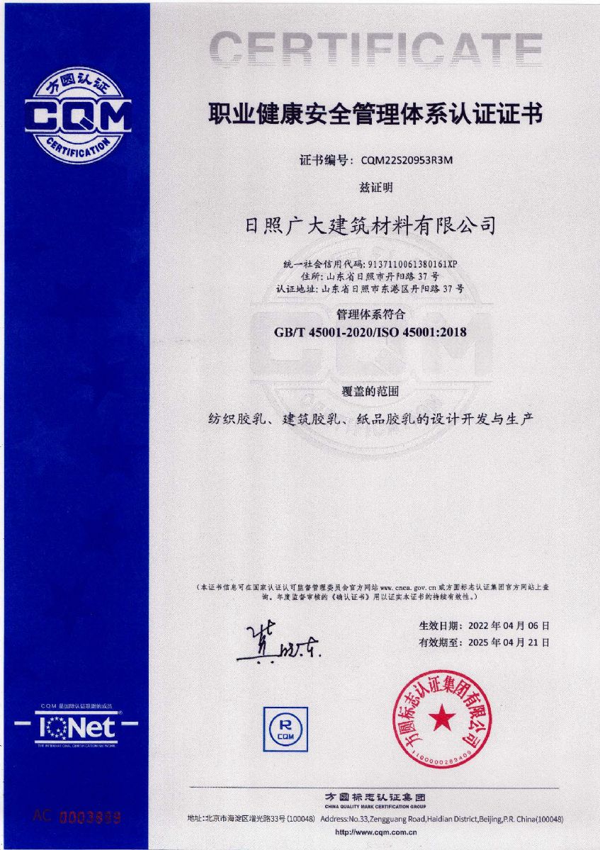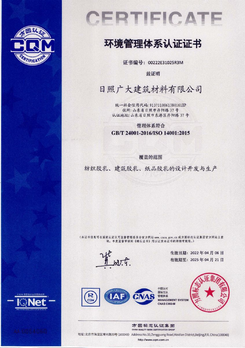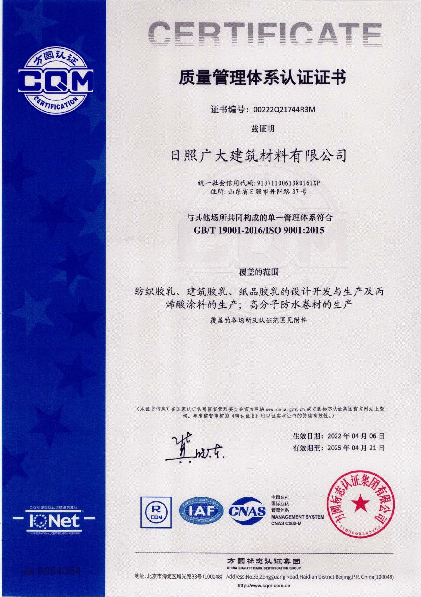 日照廣大建筑材料有限公司,位于風(fēng)景秀麗的海濱城市山東日照,成立于1988年,是專業(yè)生產(chǎn)高分子化工產(chǎn)品,集科研開發(fā)、生產(chǎn)經(jīng)營為一體的化工企業(yè),主要產(chǎn)品為丙烯酸脂類乳液和丁苯膠乳。是國內(nèi)目前江北同行業(yè)產(chǎn)銷量最大企業(yè)之一。