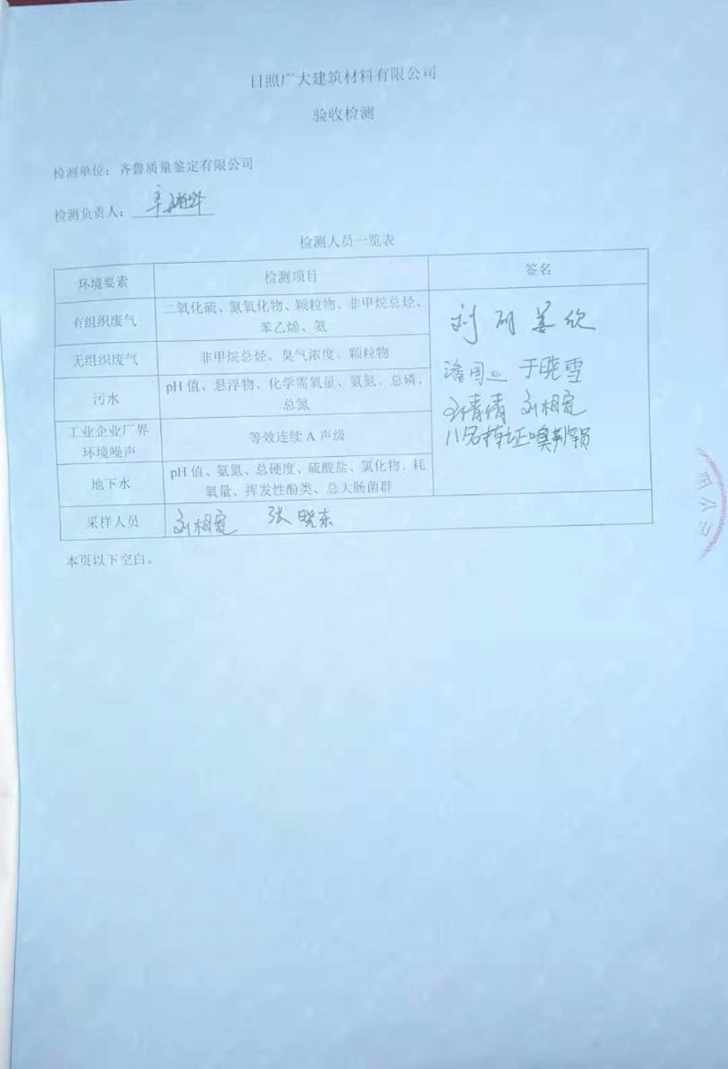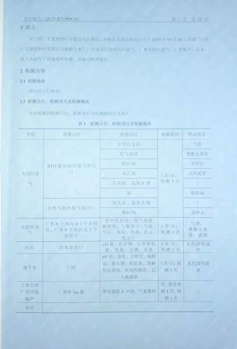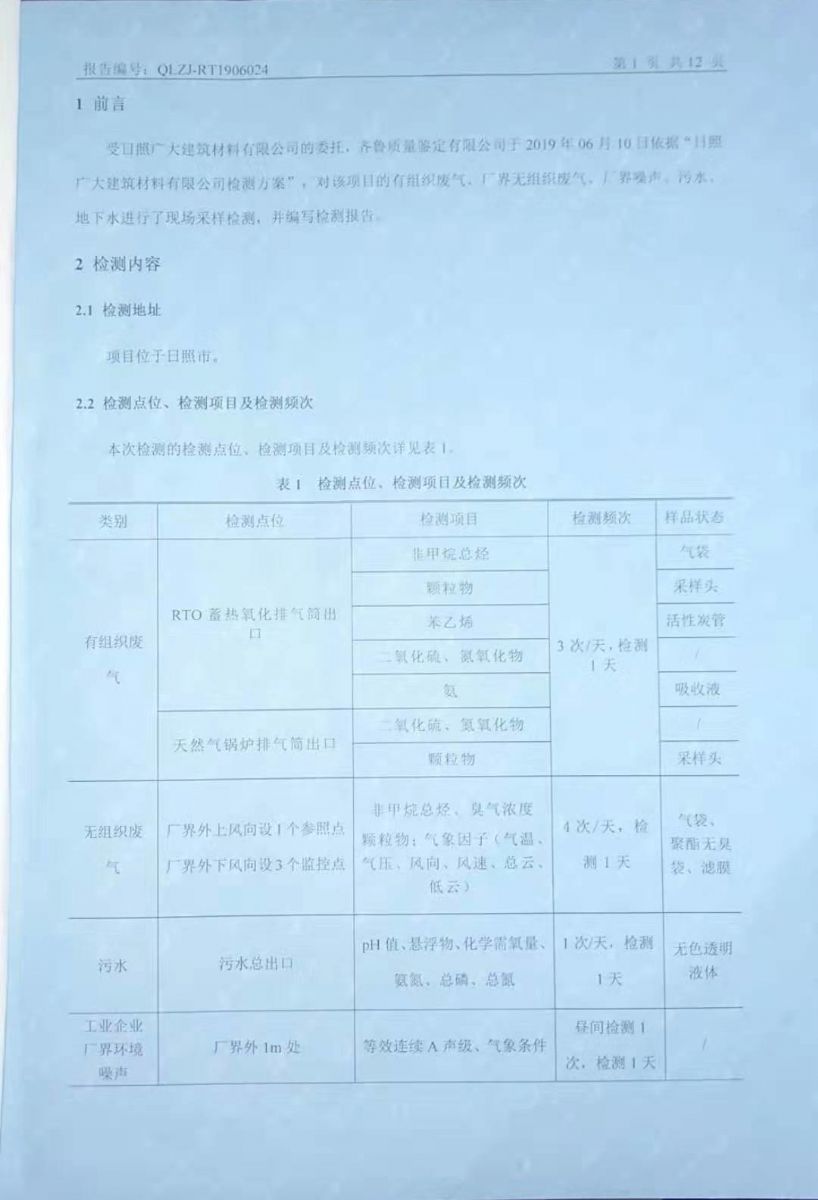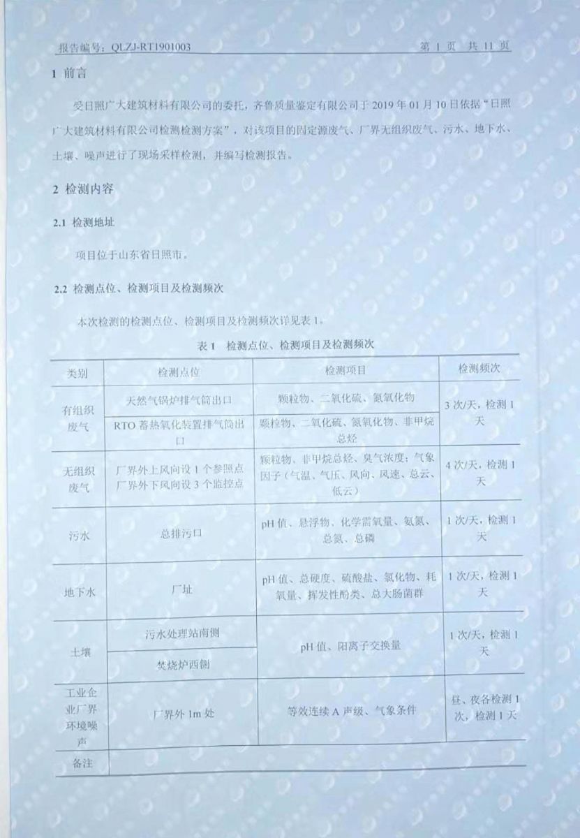 日照廣大建筑材料有限公司環(huán)保檢測報(bào)告